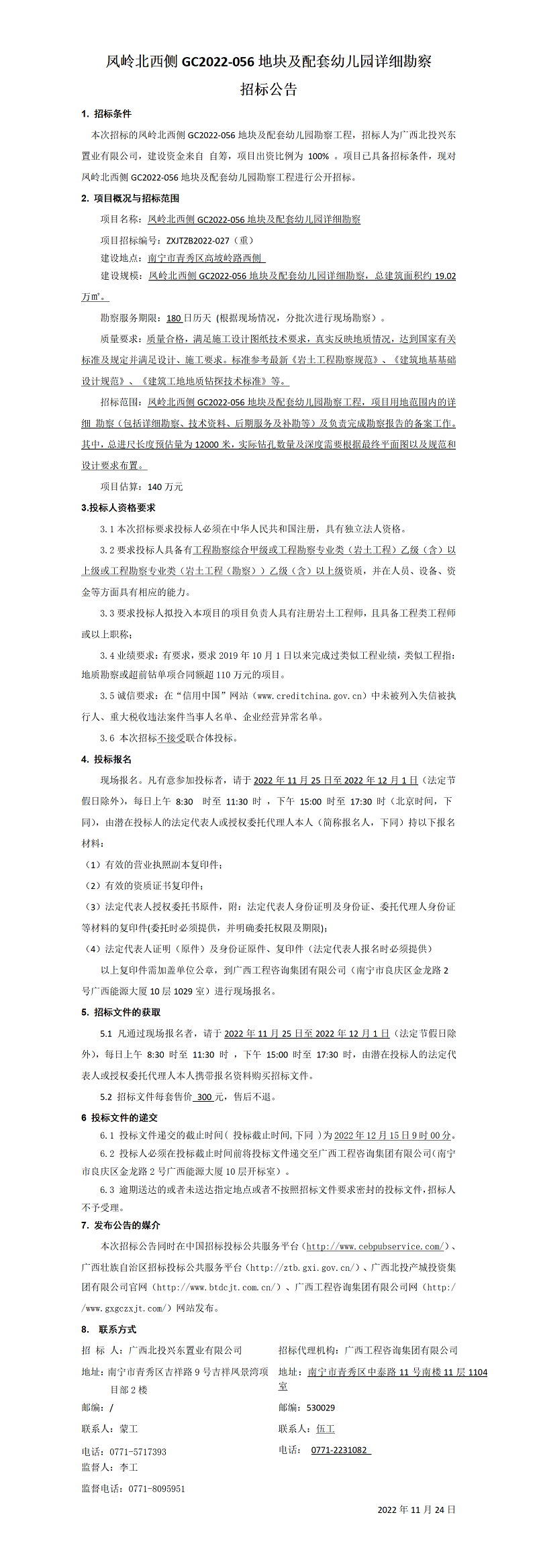 鳳嶺北西側GC2022-056地塊及配套幼兒園詳細勘察招標公告