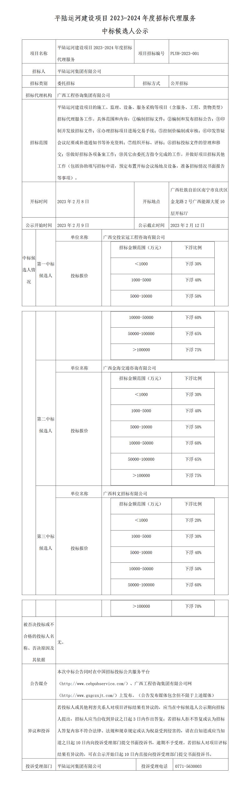 平陸運(yùn)河建設(shè)項目2023-2024年度招標(biāo)代理服務(wù)中標(biāo)候選人公示