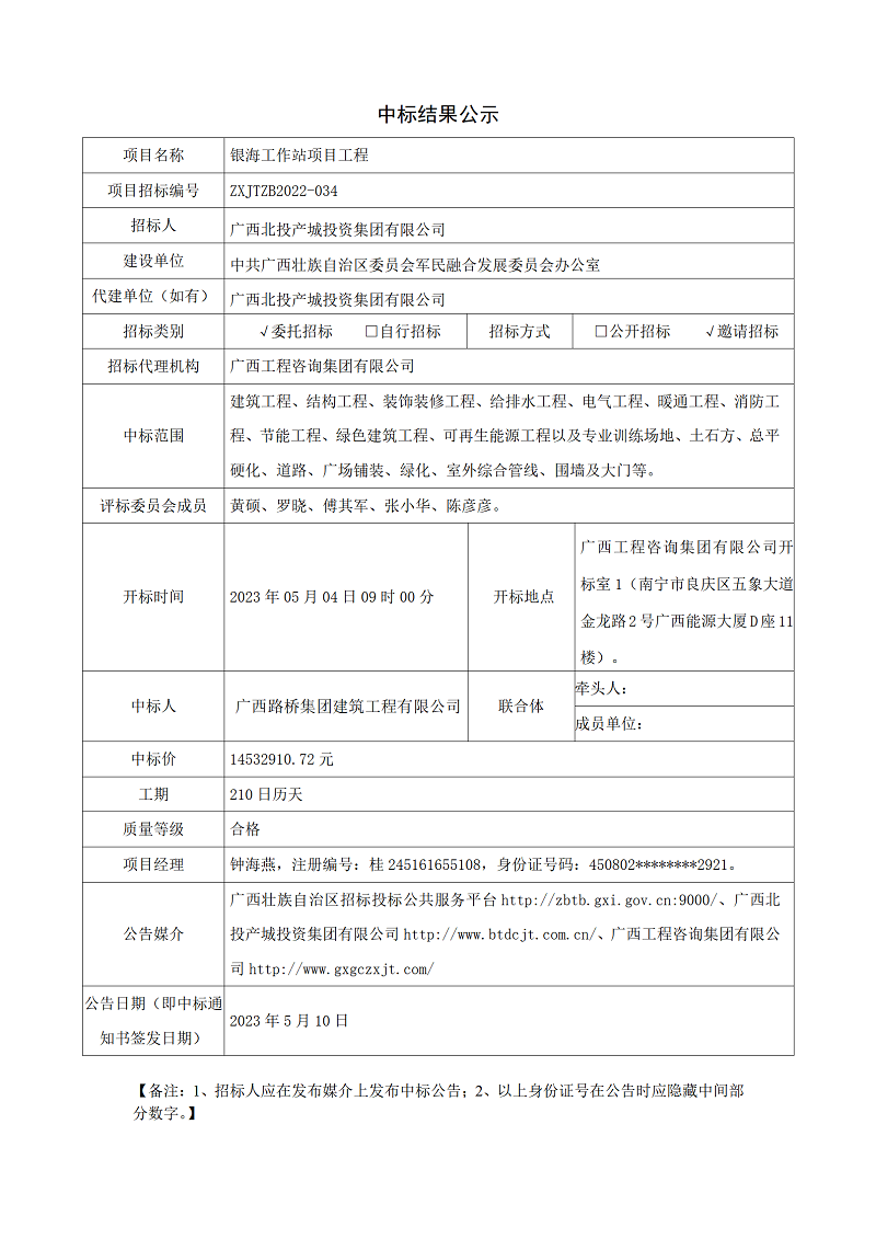 中標結果公示