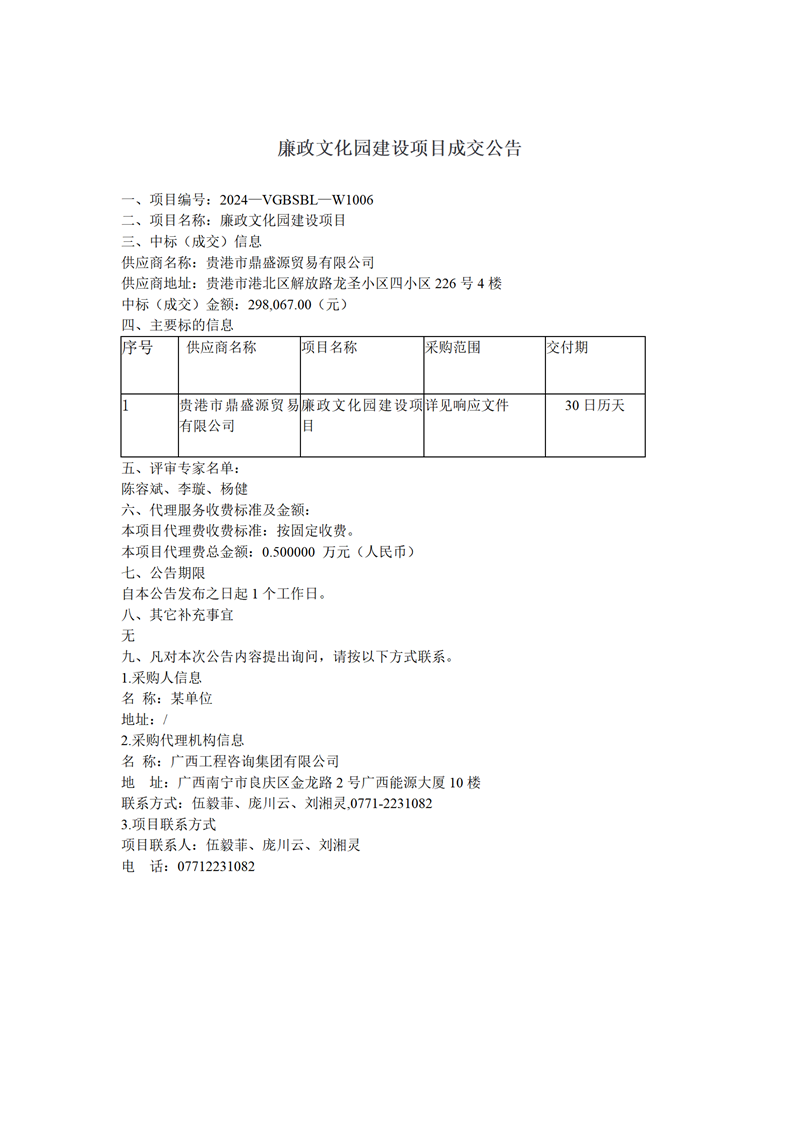 廉政文化園建設項目成交公告